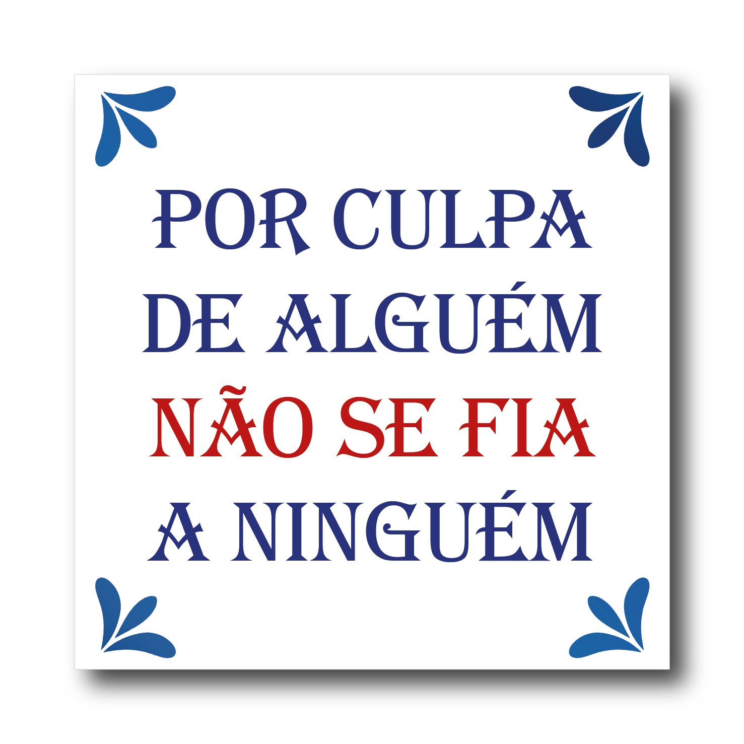 Azulejo "Não se fia" 7,10 € Desconto de %. Partilhar Tamanho 10x10cm 15x15cm Suporte de mesa - 0,90 € Base de cortiça - 2,95 € Comprar Contactar Azulejo "Não se fia" Azulejo personalizado com frase, em estilo tradicional Pode escolher entre as medidas 10x10cm ou 15x15cm Pode ainda acrescentar suporte de pés em MDF, suporte de parede e ainda uma base de cortiça
