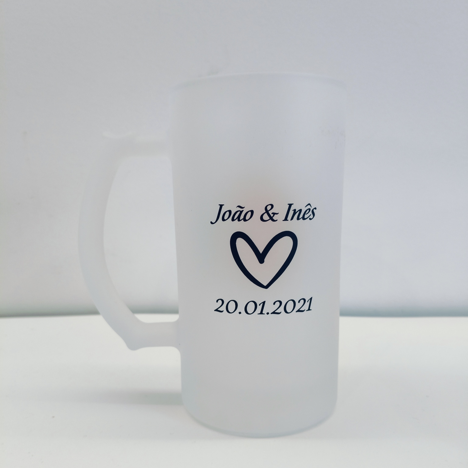 Surpreenda o seu parceiro com um presente único e refrescante! Esta caneca de cerveja em vidro fosco (efeito gelado) é o presente ideal para celebrar momentos especiais, aniversários de namoro ou o Dia dos Namorados.