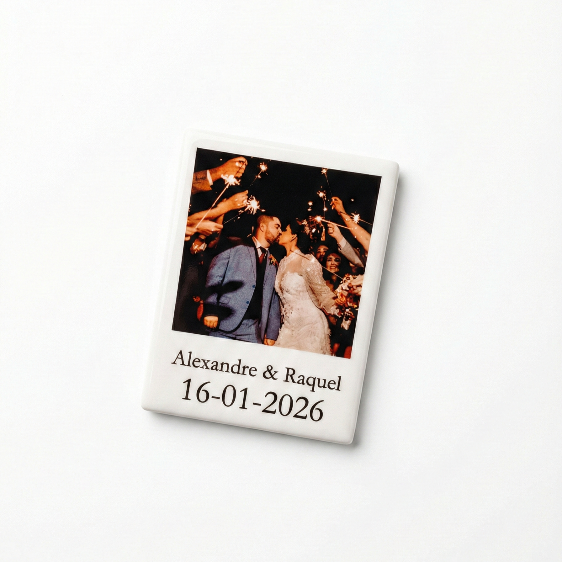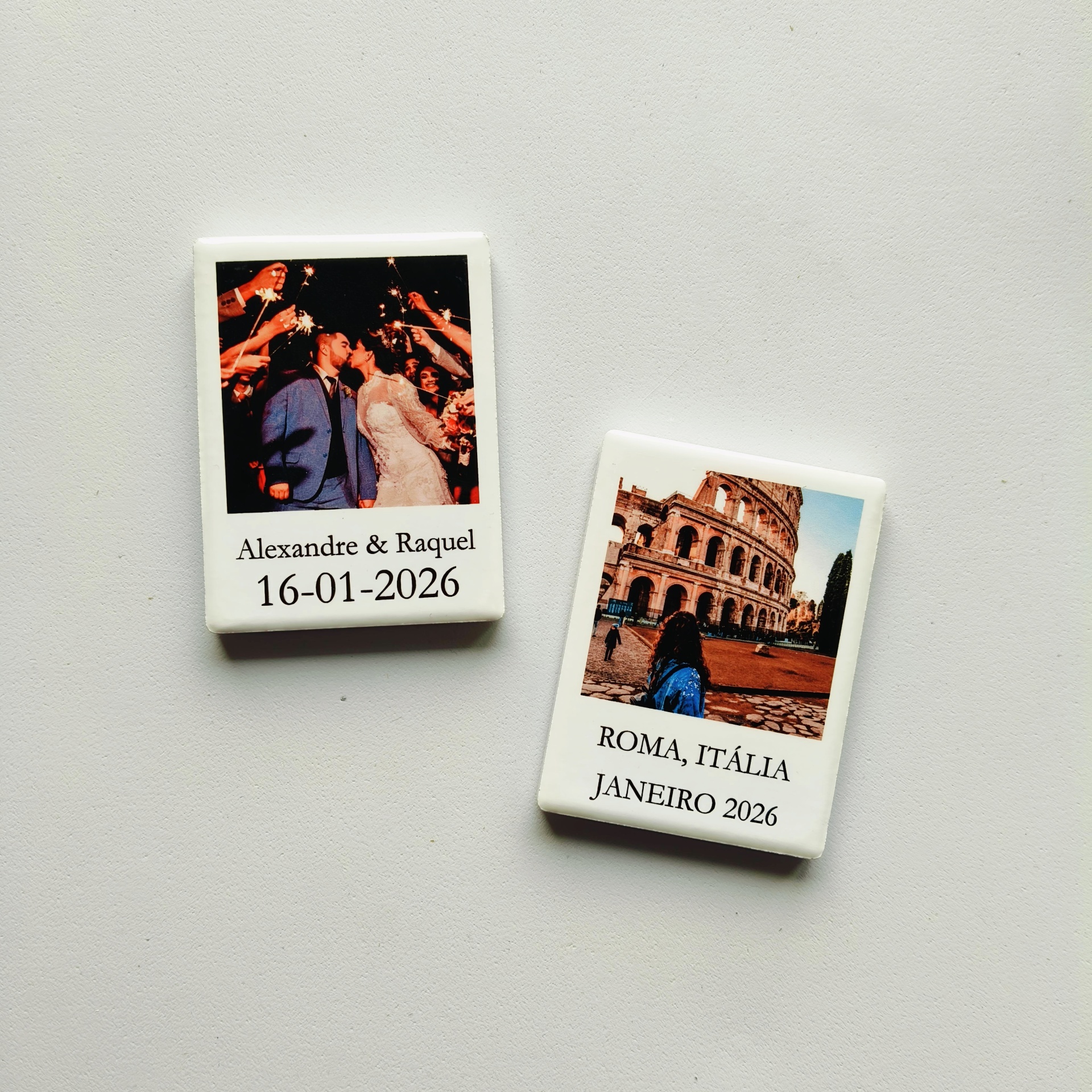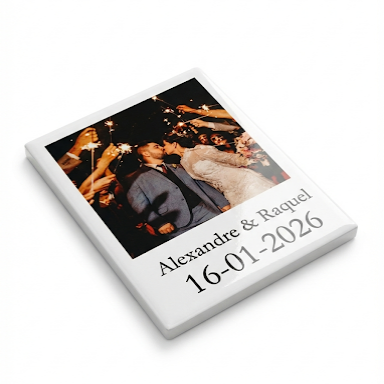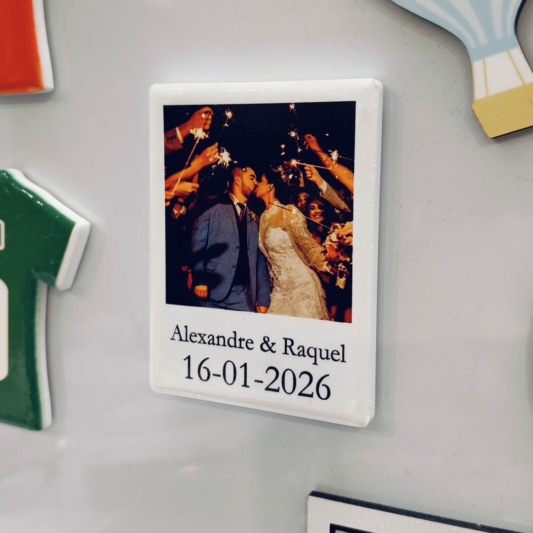O íman em cerâmica formato polaroid é ideal para lembranças de casamento, batizados e eventos especiais, ou para eternizar aquele lugar que marcou a vossa história