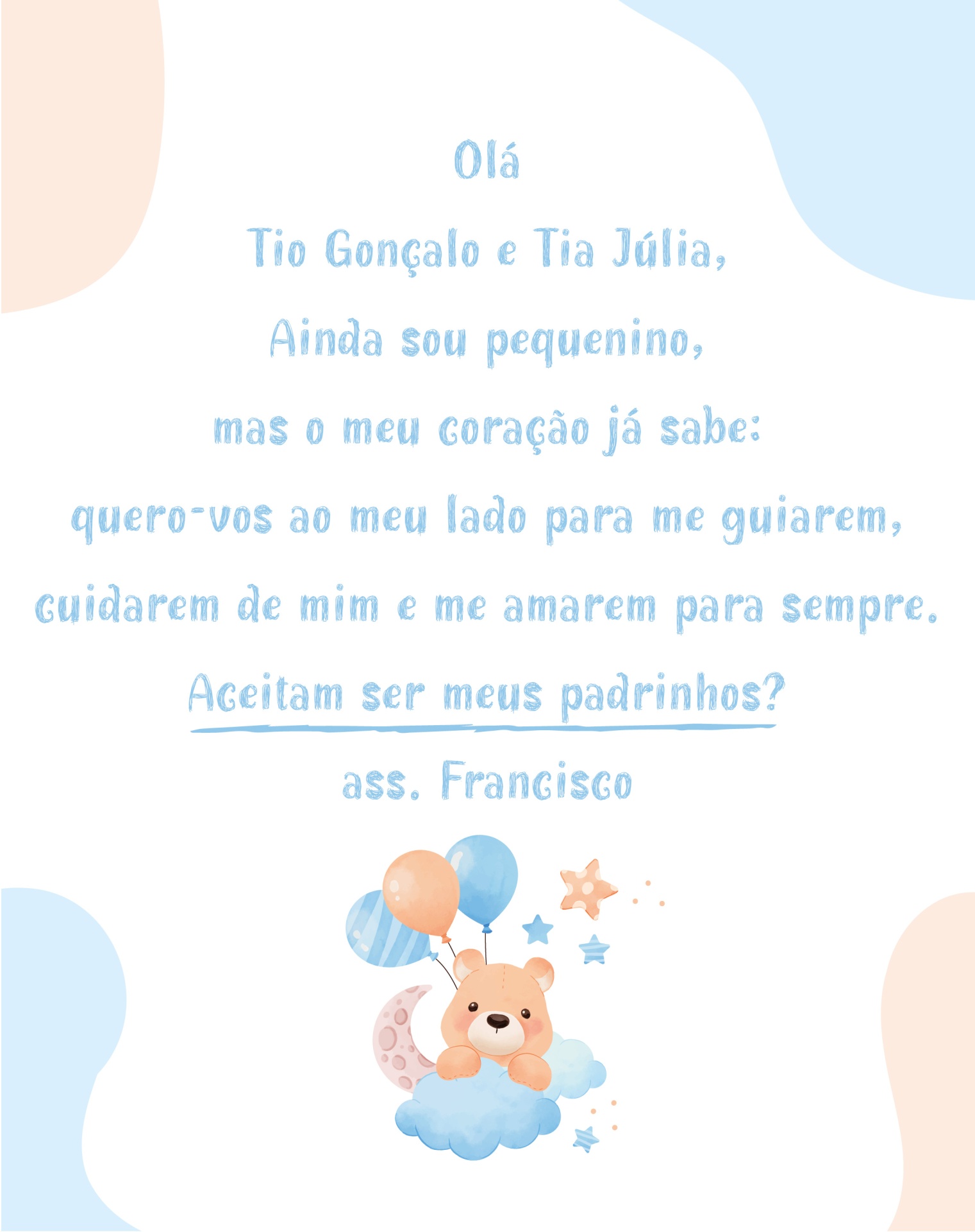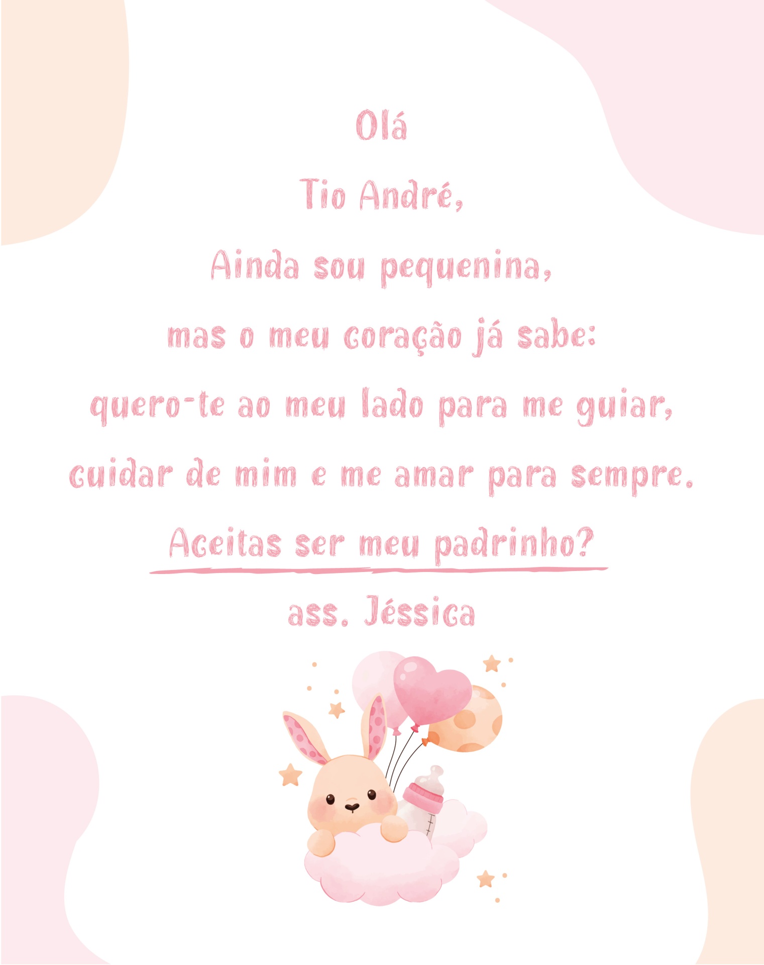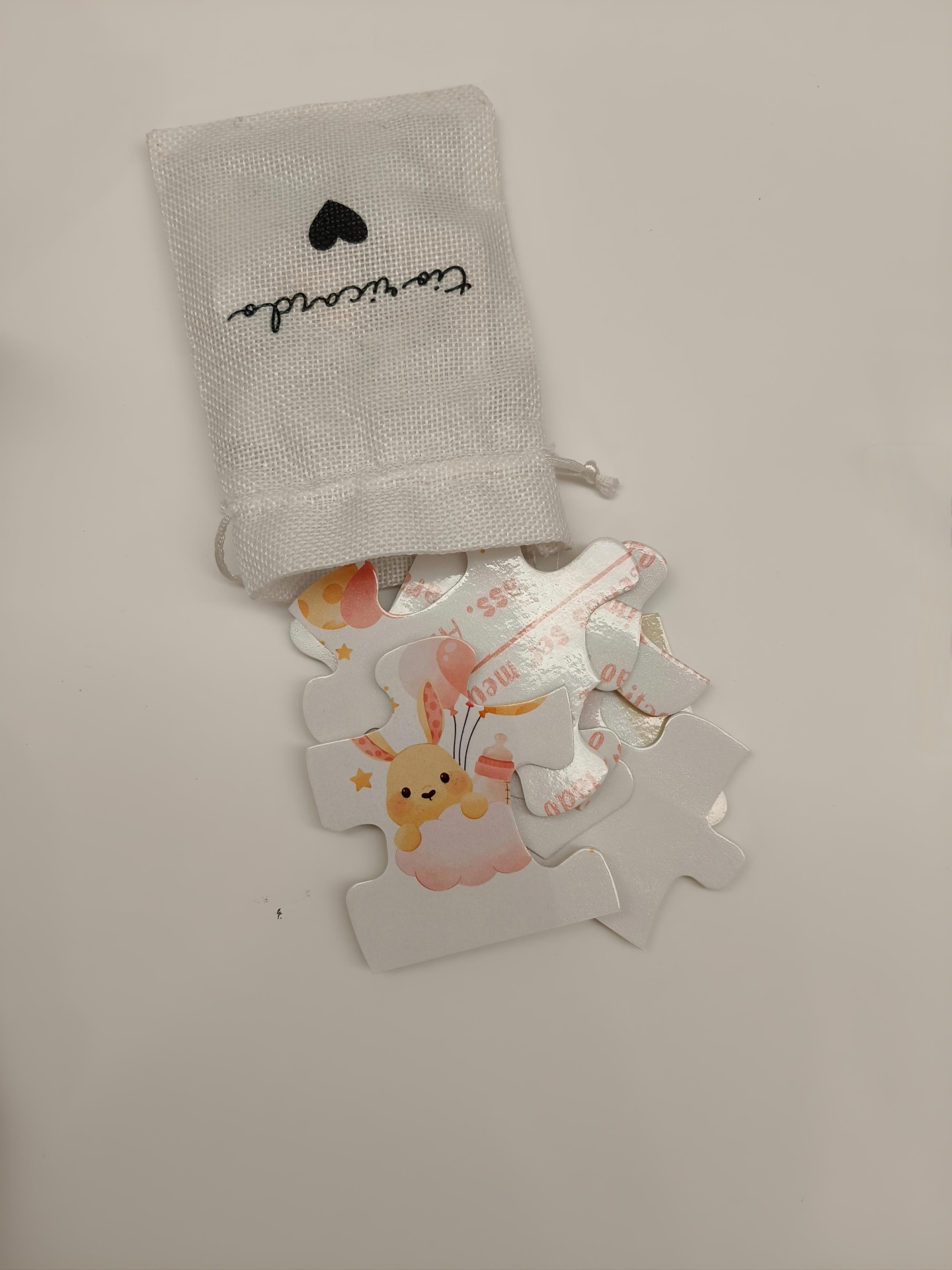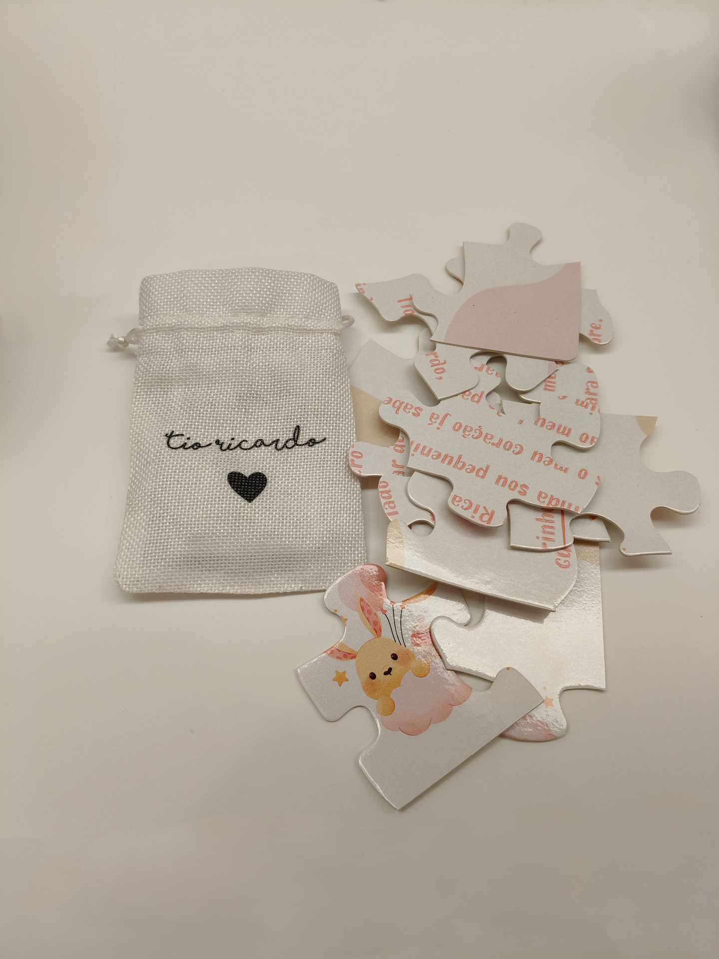 Inclui saco em linho personalizado com nome ou mensagem especial, tornando o momento ainda mais único.