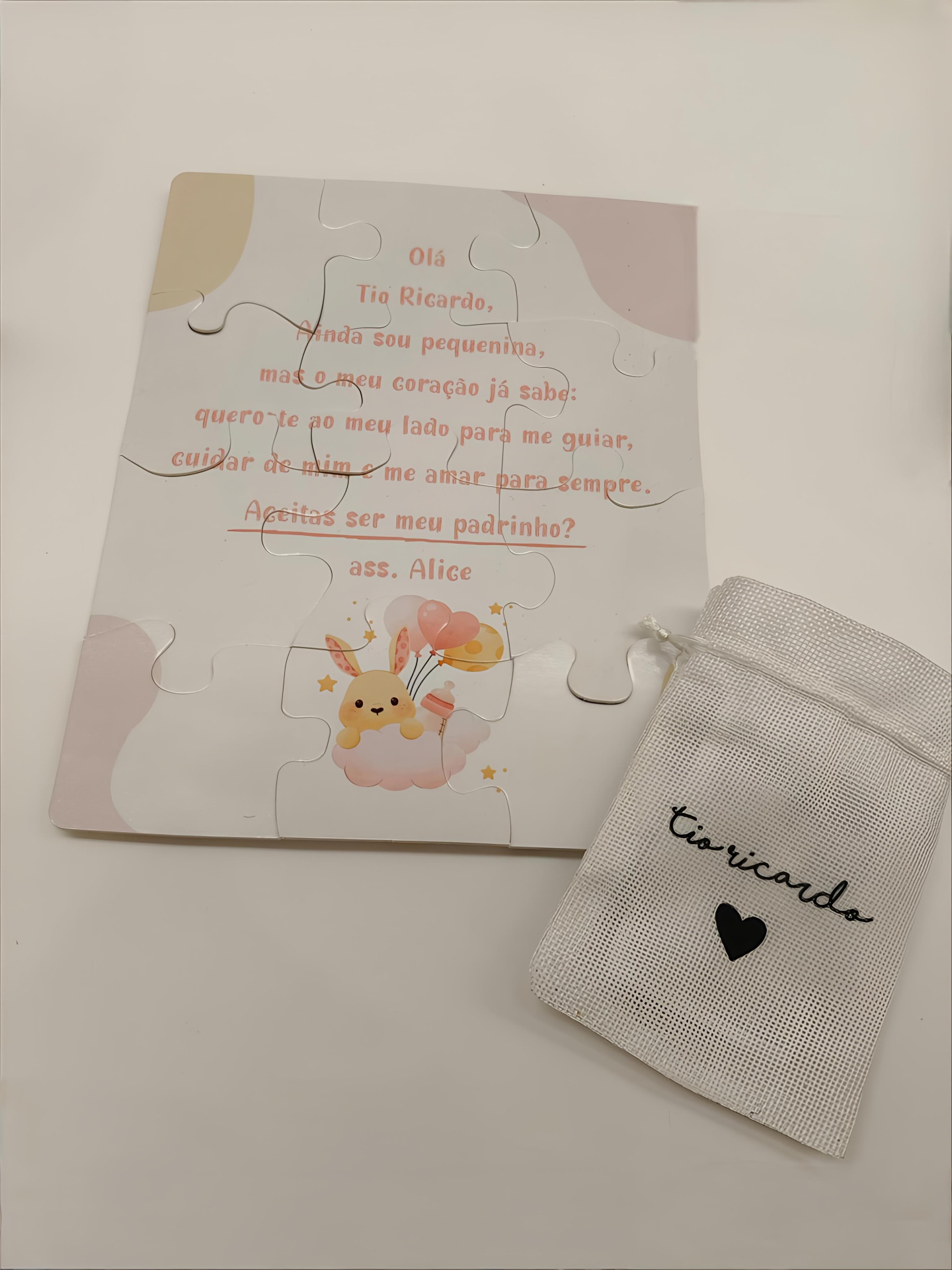 O convite de padrinhos em puzzle de 12 peças é uma forma original e emocionante de fazer o pedido